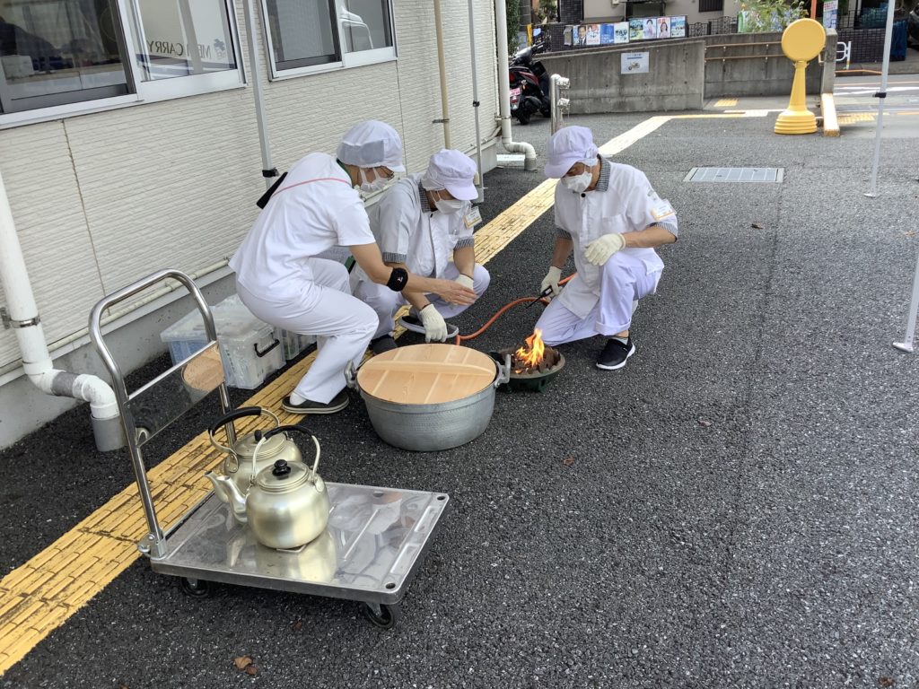 先日、炊き出し訓練を行いました。大きな鍋で水を沸かし、その湯で防災食を頂きます。この日のお昼は、ご利用者さんも職員もカップラーメン、パウチの野菜ゼリー、缶飲料。この先も訓練で食べるだけでありたいです。