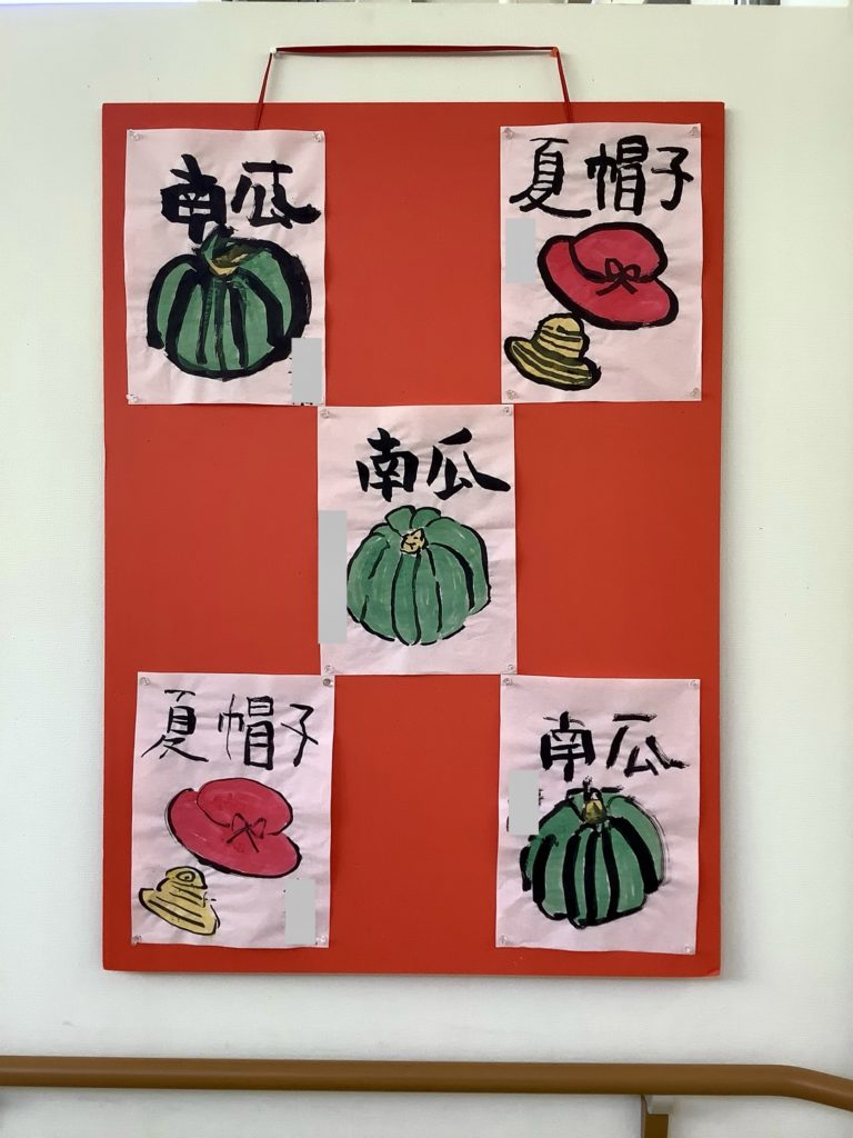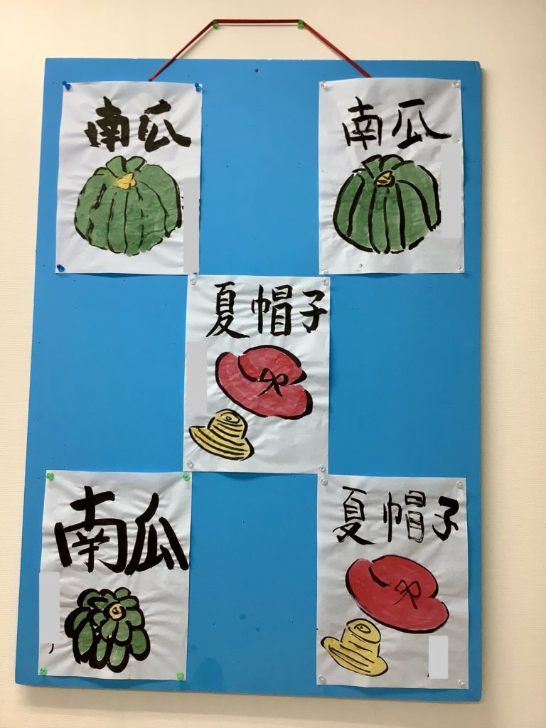 今月の書道。その時季に合った題材を取り込んだお手本で、季節感を味わいながら楽しんでいます。