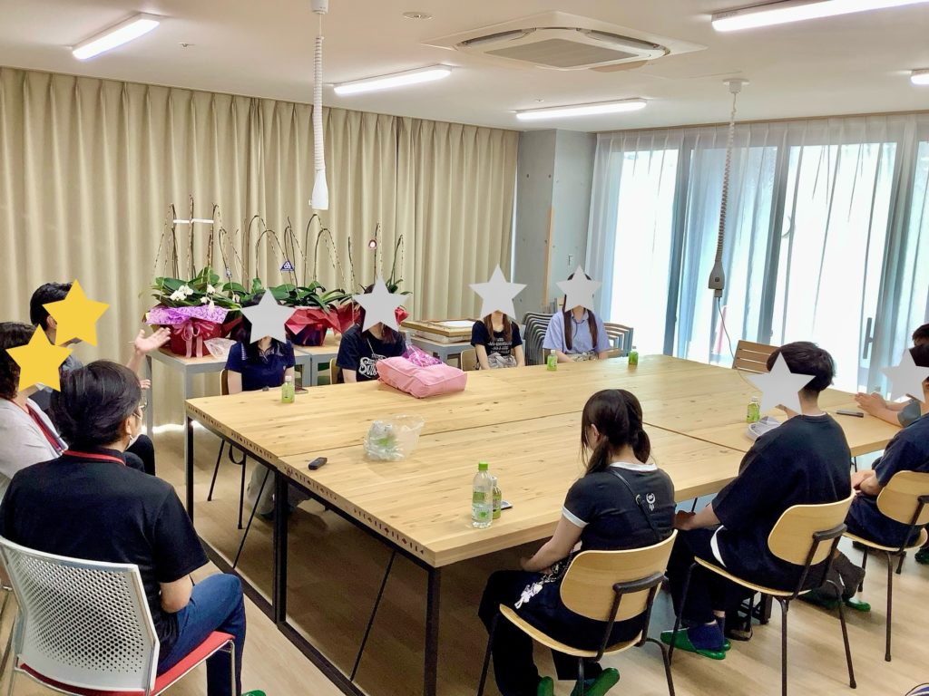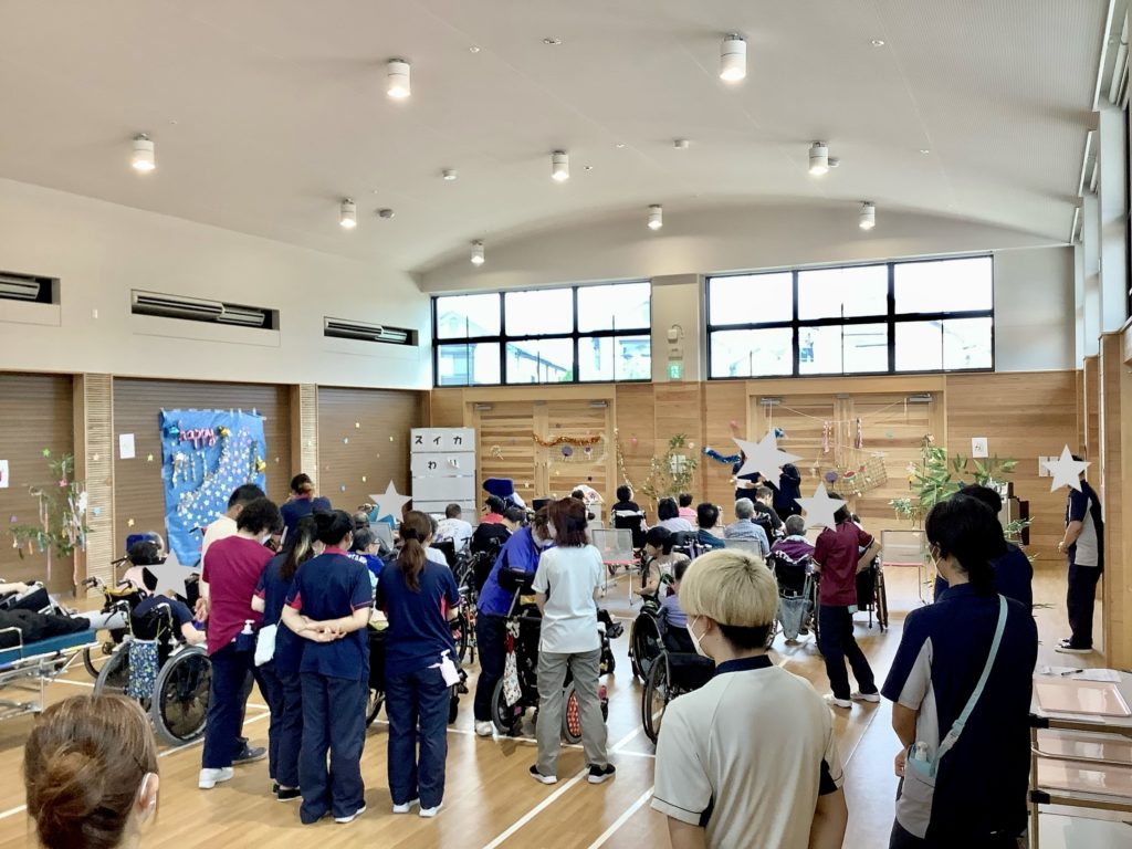 まりもホールで新人職員紹介+質問タイム、スイカ割りやミニゲーム、デザートのかき氷を召し上がって楽しまれました🎶