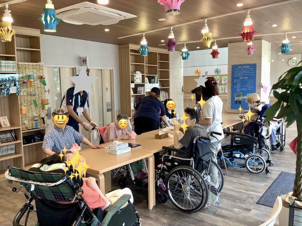 お礼に七夕イベントへ招待し、ミニゲームや短冊かざり、かき氷🍧で涼を感じてもらいました😊