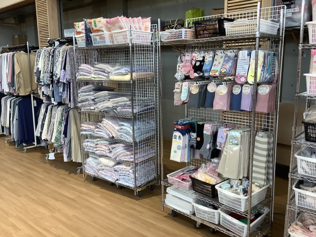 衣料品だけでなく、お菓子や文房具、おもちゃなど生活用品が一通り揃う品揃え。