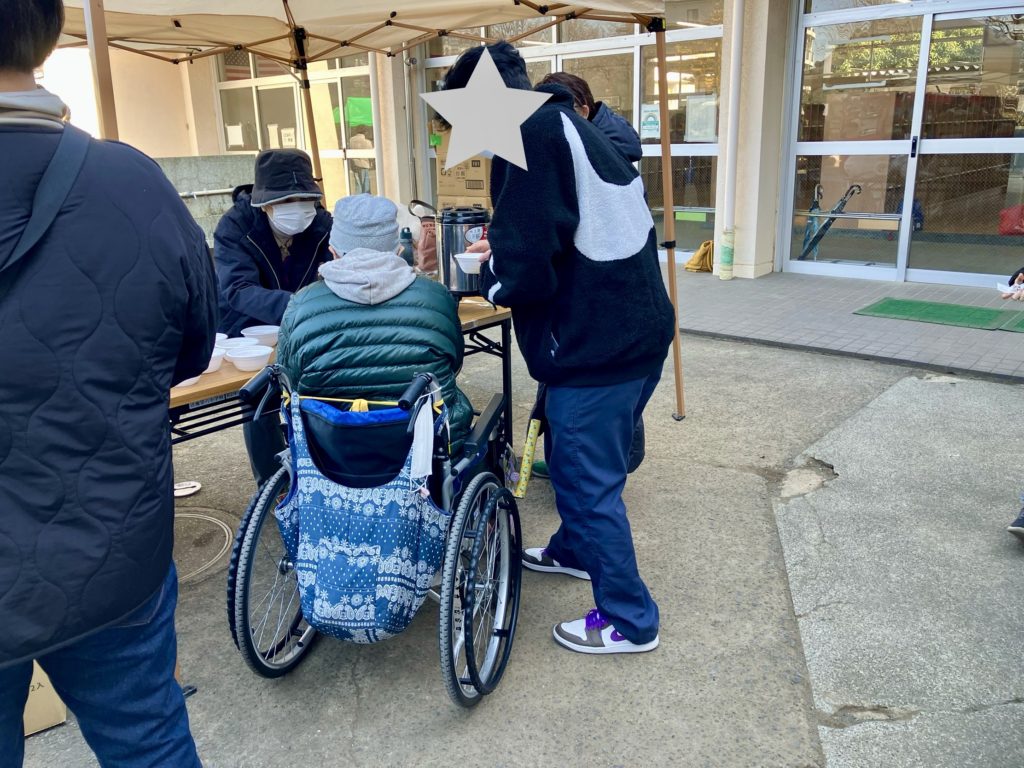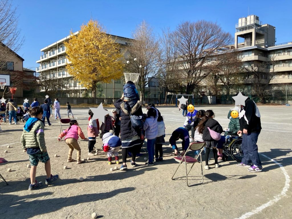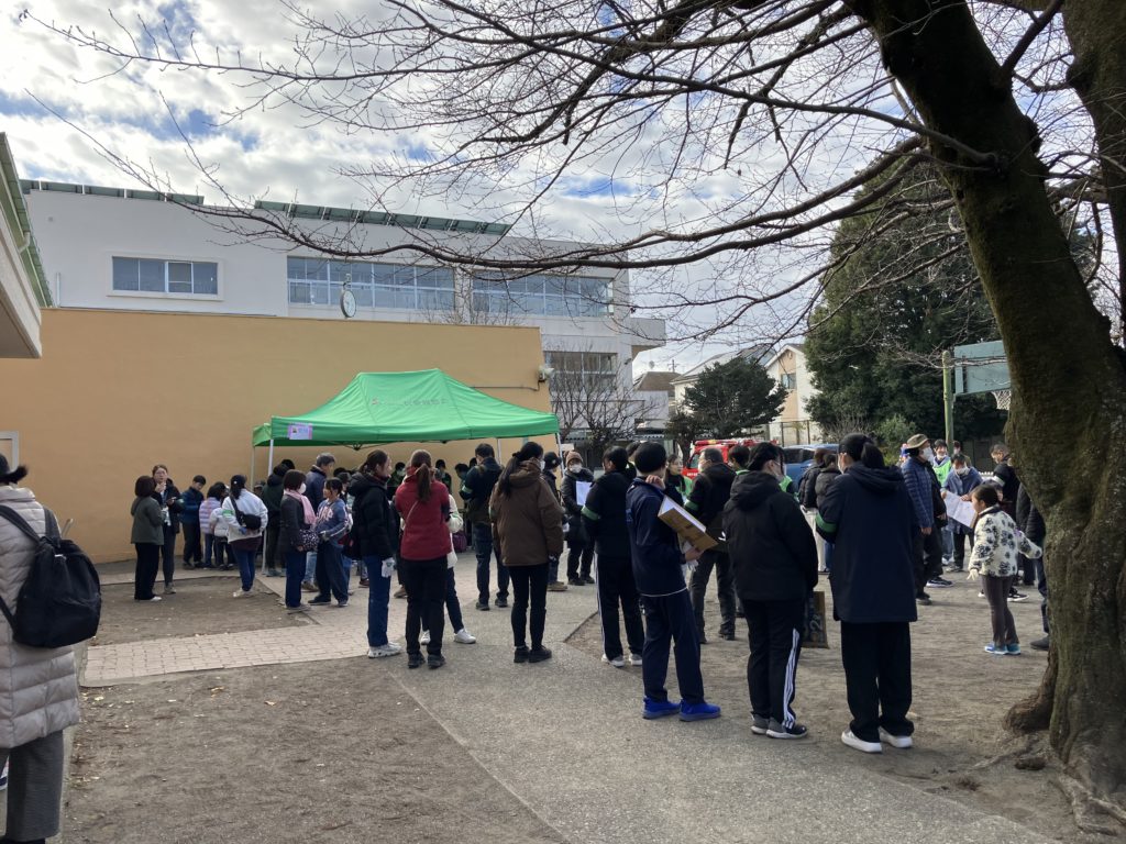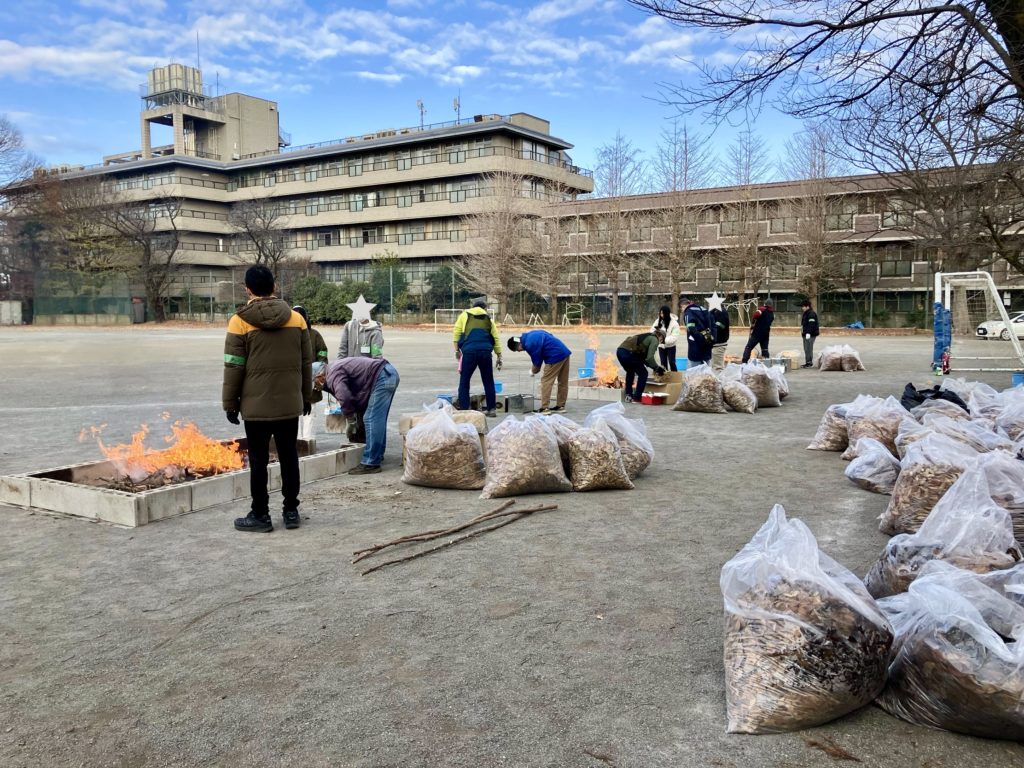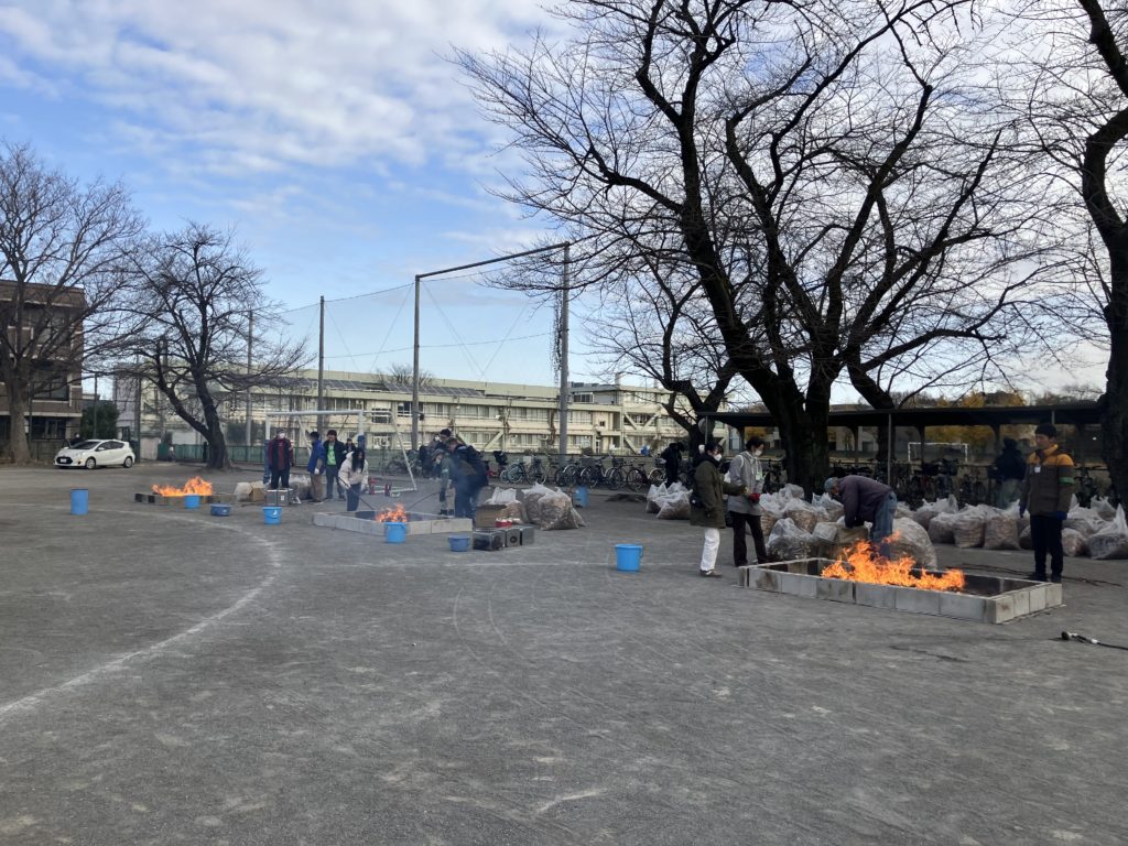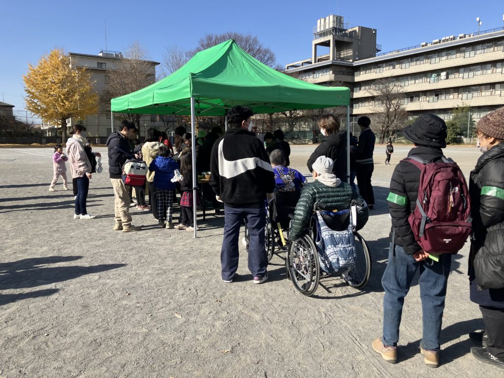 焼き芋会場となる清瀬第六小学校の校庭では、防災食用の味噌汁をいただいたり、玉入れや清瀬の○×クイズなど行ったりしながら地域の方と過ごしました。焼き芋は、蒸してから焼いたこともあって、柔らかく甘いお芋となりました。
