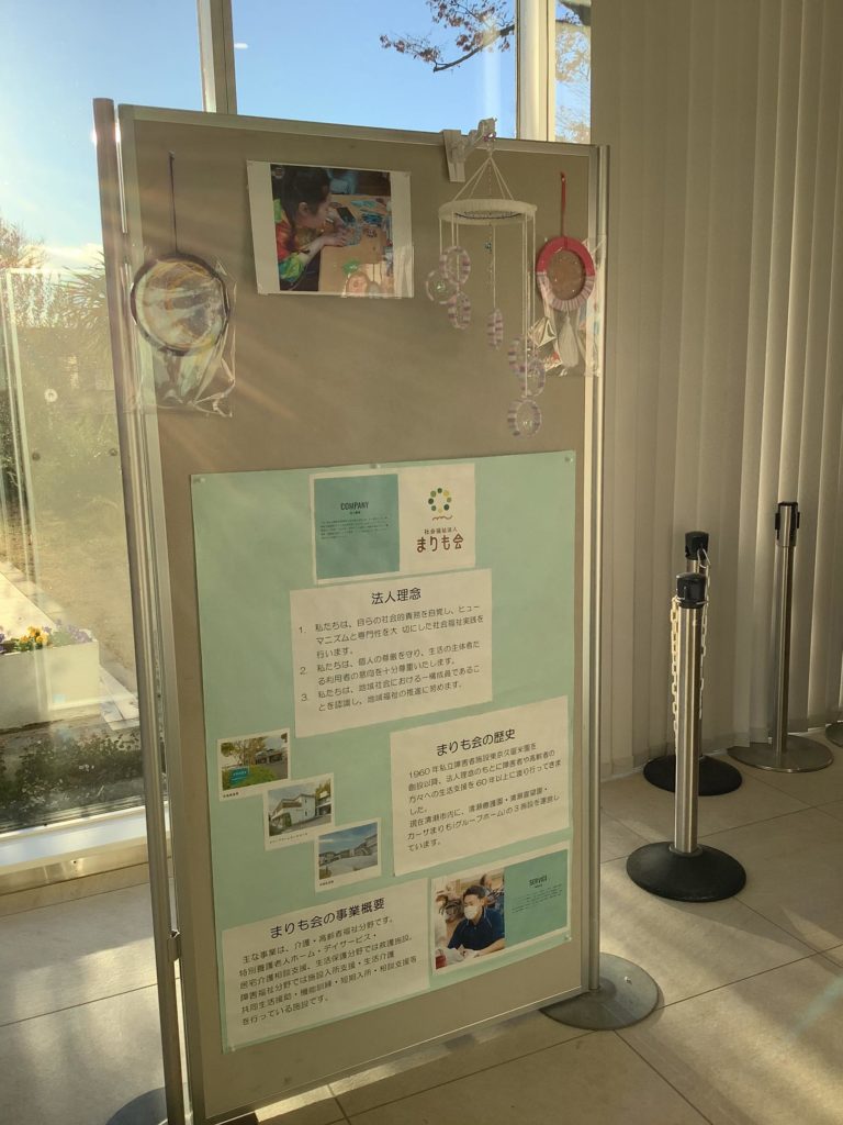 12月1日~5日まで、清瀬市役所で行われた「障害者週間」の啓発活動として、自主生産品とご利用者さんが描いた絵の展示を行ってきました。まりも会の清瀬市内施設(今回は清瀬療護園と清瀬喜望園)の2施設の参加となりました。