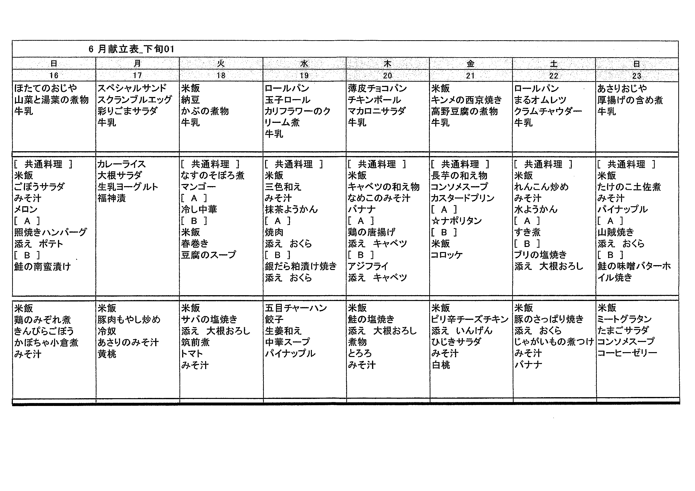 清瀬療護園 6月後半の献立メニューです2024.06.15清瀬療護園「6月16日~23日の献立」(クリックやタッチすると大きく見えます)「6月24日~30日の献立」(クリックやタッチすると大きく見えます)ご利用者の食形態に応じた食事を提供しています。(以下画像からリンク先の記事をご覧になれます)