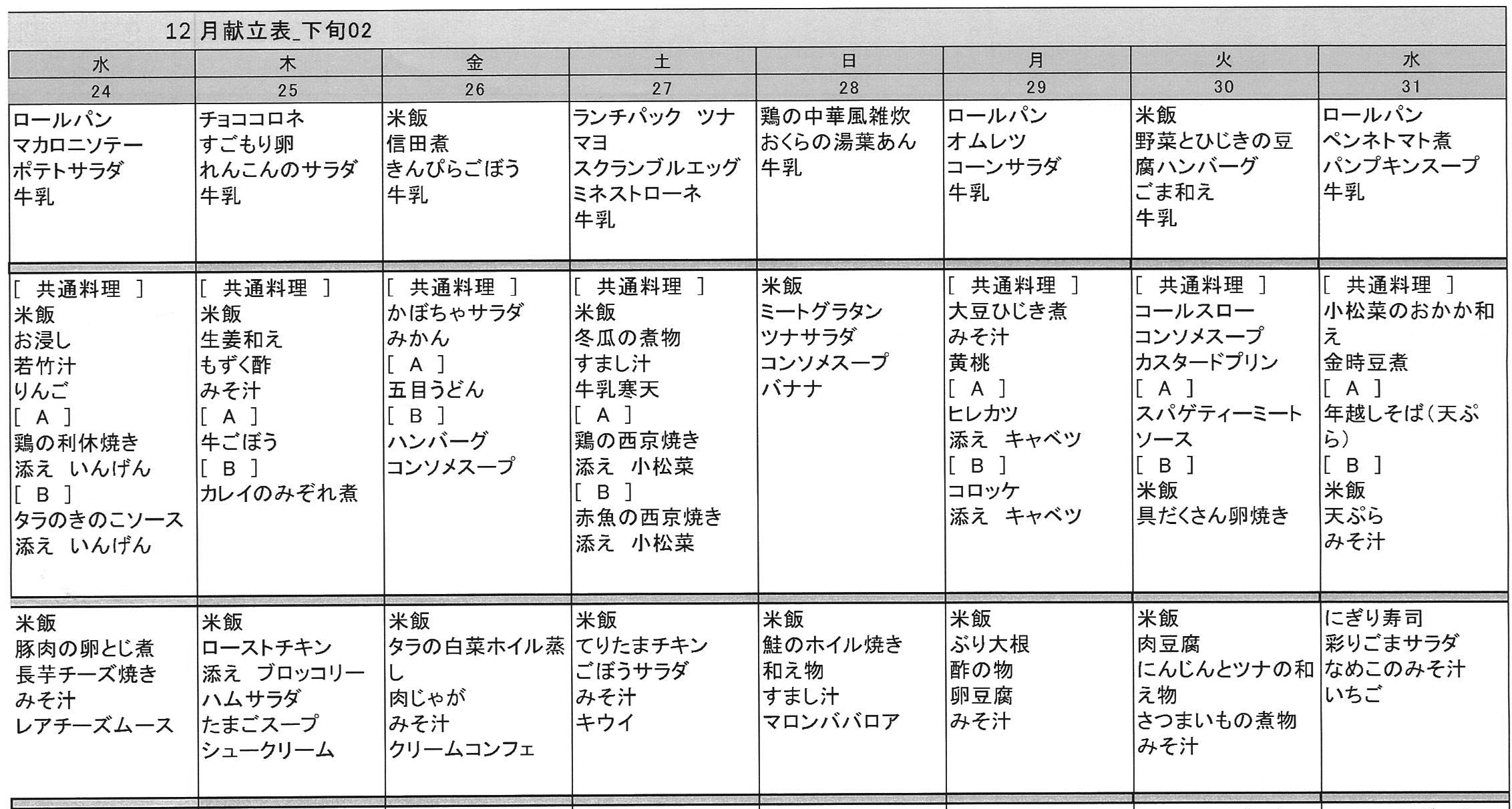 清瀬療護園 12月後半の献立メニューです2025.12.15清瀬療護園「12月16日~23日の献立」(クリックやタッチすると大きく見えます)「12月24日~31日の献立」(クリックやタッチすると大きく見えます)ご利用者の食形態に応じた食事を提供しています。(以下画像からリンク先の記事をご覧になれます)