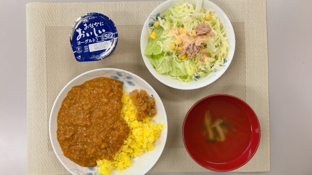 トロっとしたキーマカレー。今日はターメリックライスと一緒にいただきました。