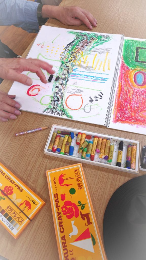 怒りや悲しみなど、言葉にならない感情を表現しているとのことです。黒いものが取り巻きつつも、光に向かって顔を向けている、そんな様子を描かれました。
