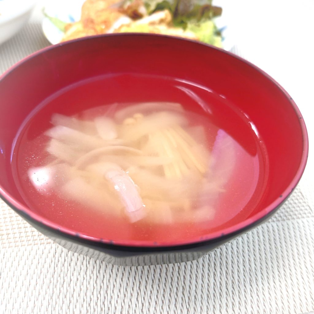 玉ねぎとエノキのコンソメスープでした。