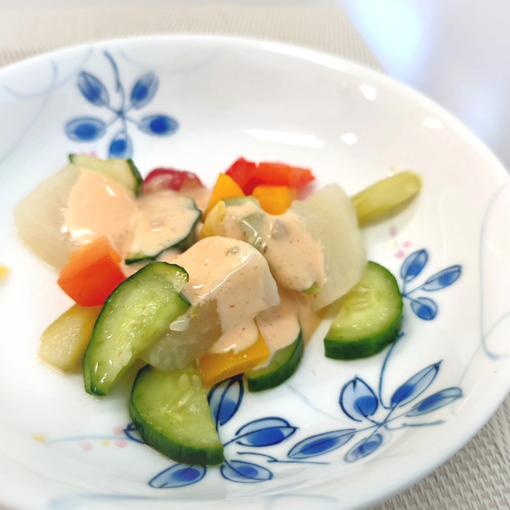 パプリカの赤色が際立つ、温野菜サラダでした。