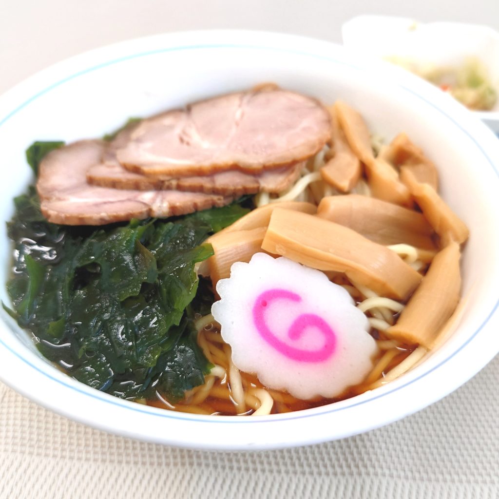 チャーシュー、メンマ、なるとがトッピングされた醤油ラーメンは、とてもボリューム満点でした。