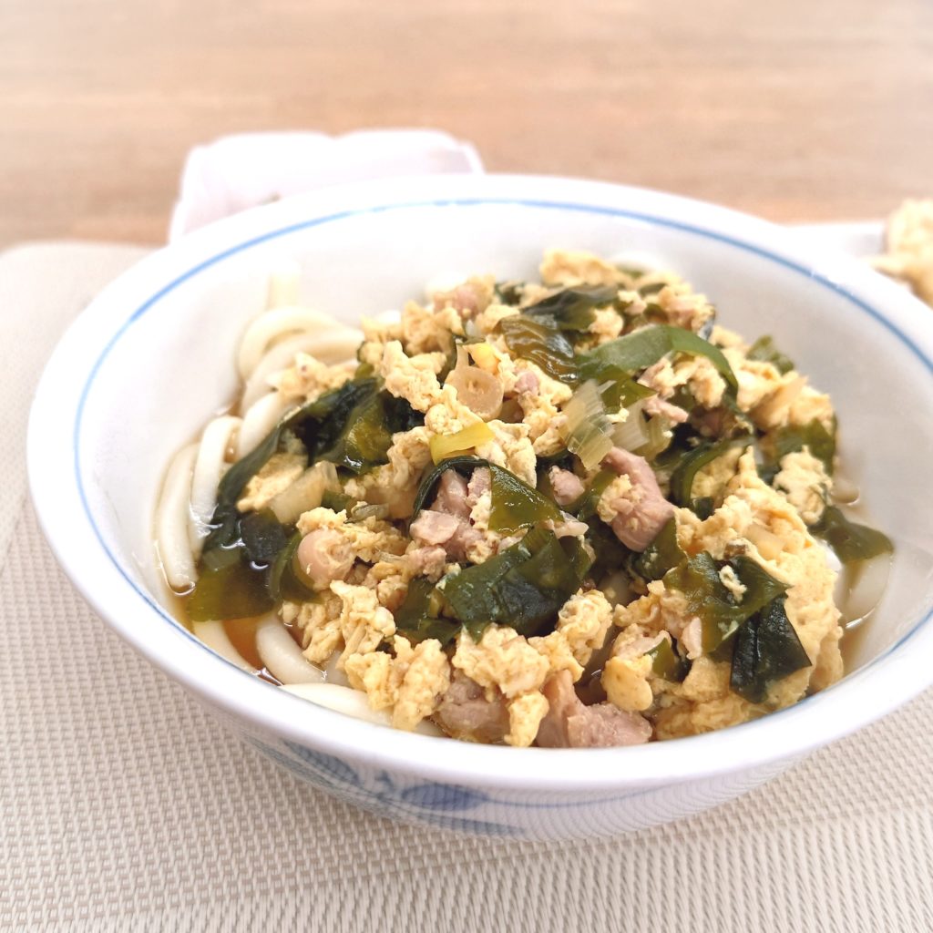 とり肉と卵の炒め物がトッピングのうどんでした。