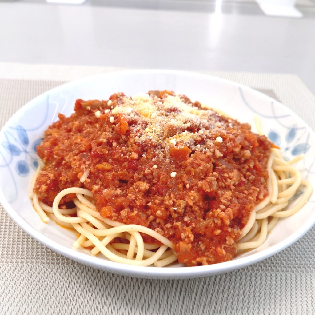 ガーリックがほんのりときいたミートソースはボリュームたっぷりでした。