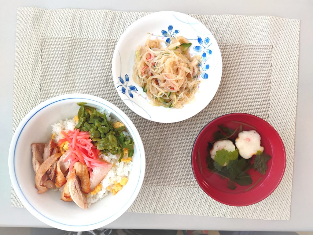 甘さ控えめの照り焼きソース。紅ショウガやピーマンの付け合わせが彩鮮やかです。