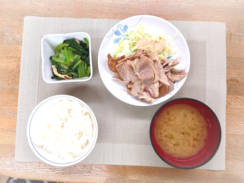 厚めの豚肉にしっかりとした味付けの生姜焼きでした。