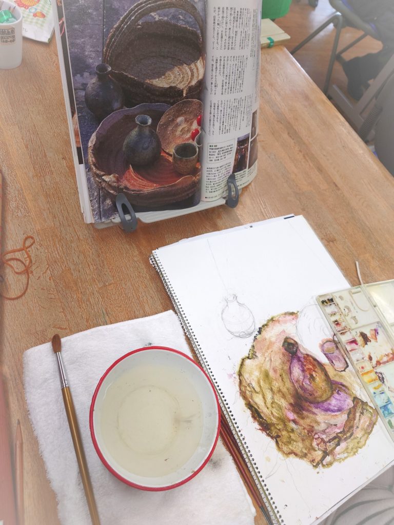有名な焼き物をモチーフに描かれています。焼き物の名前を聞いたのですが、失念してしまいました。次回確認したいと思います。