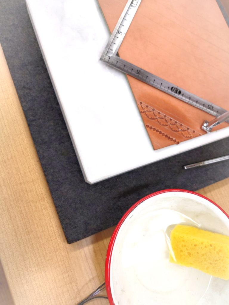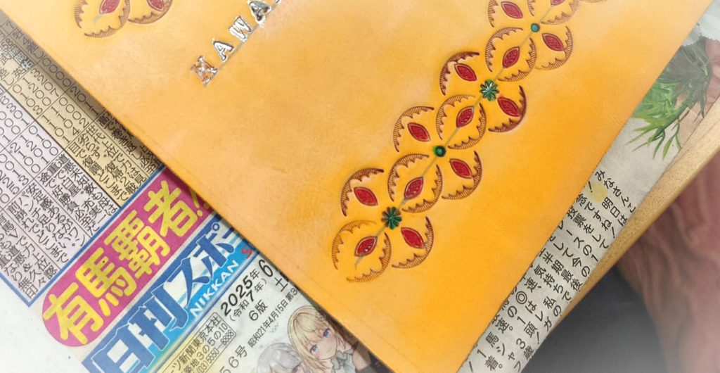キーケースを作成するための模様を作っています。整然と並んだ模様が素敵です。