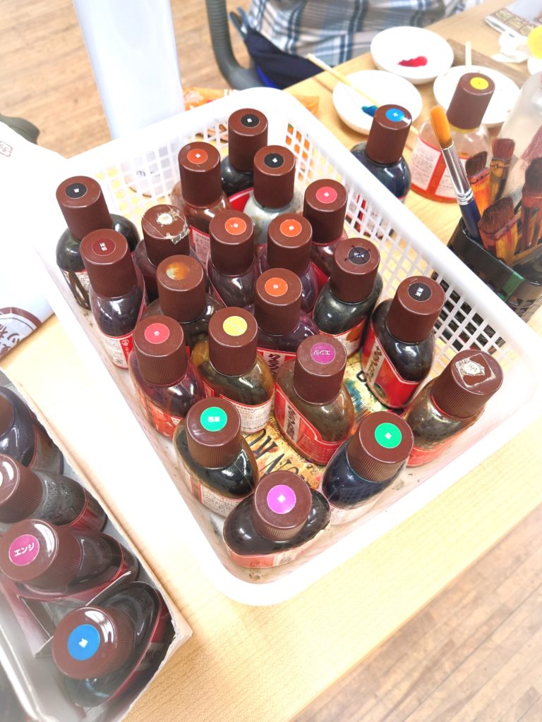 制作した模様に色付けをしています。色の組み合わせがとても綺麗です。
