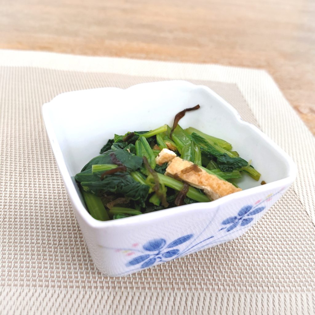 小松菜と油あげに加え、塩こんぶが味付けのポイントとなっていました。