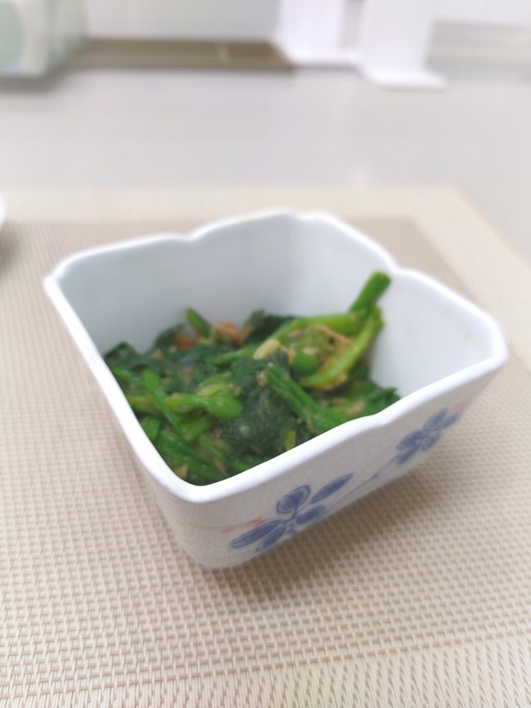 今日は、ほうれん草の大根おろしとなめこの和え物でした。