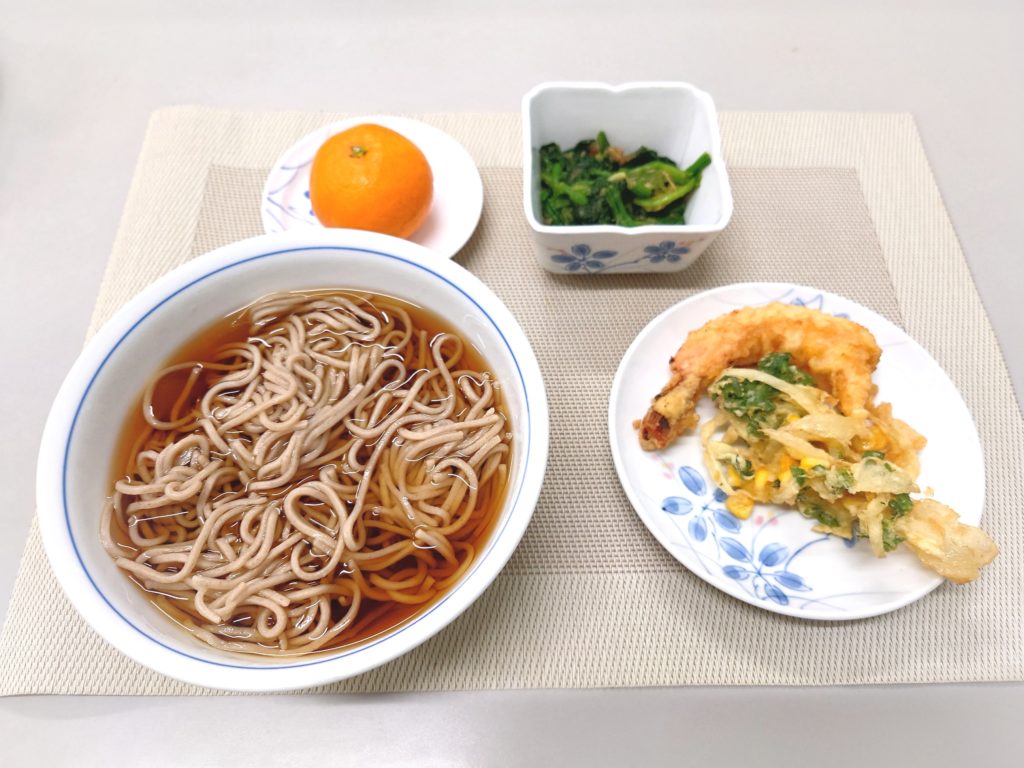 天ぷらそばが提供されました。年越しが近いと感じますね。
