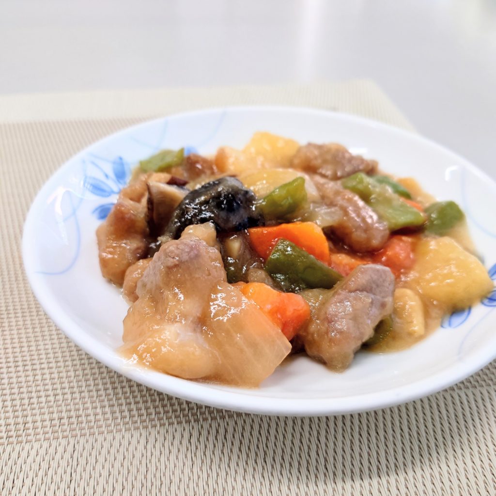 一口目で広がる甘酸っぱい黒酢の香り。外はカリッと揚がった豚肉に、噛むほどジューシーな旨み。玉ねぎとピーマンのシャキッと感、パイナップルの甘みが好アクセント。ご飯が止まらない美味しさでした。