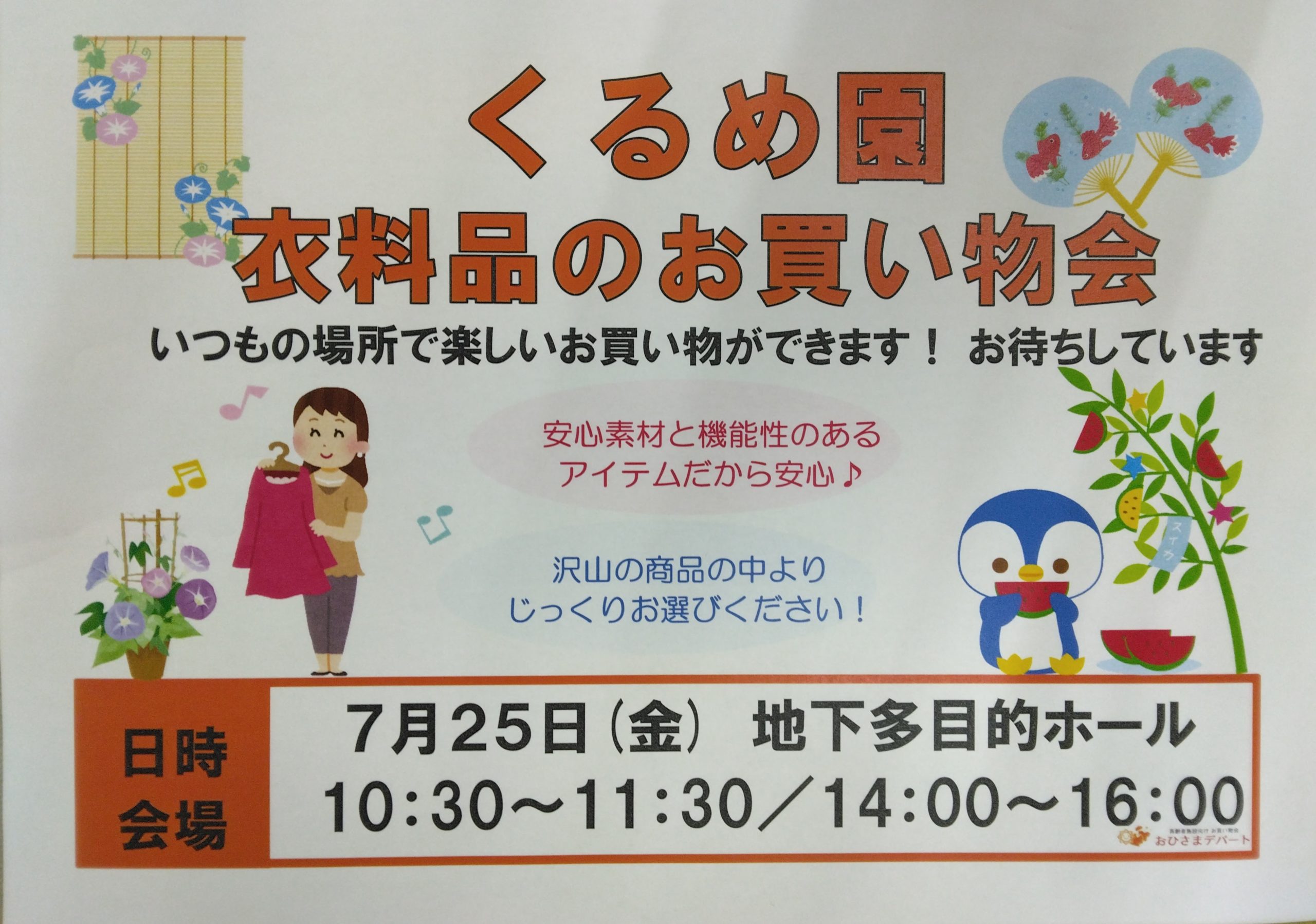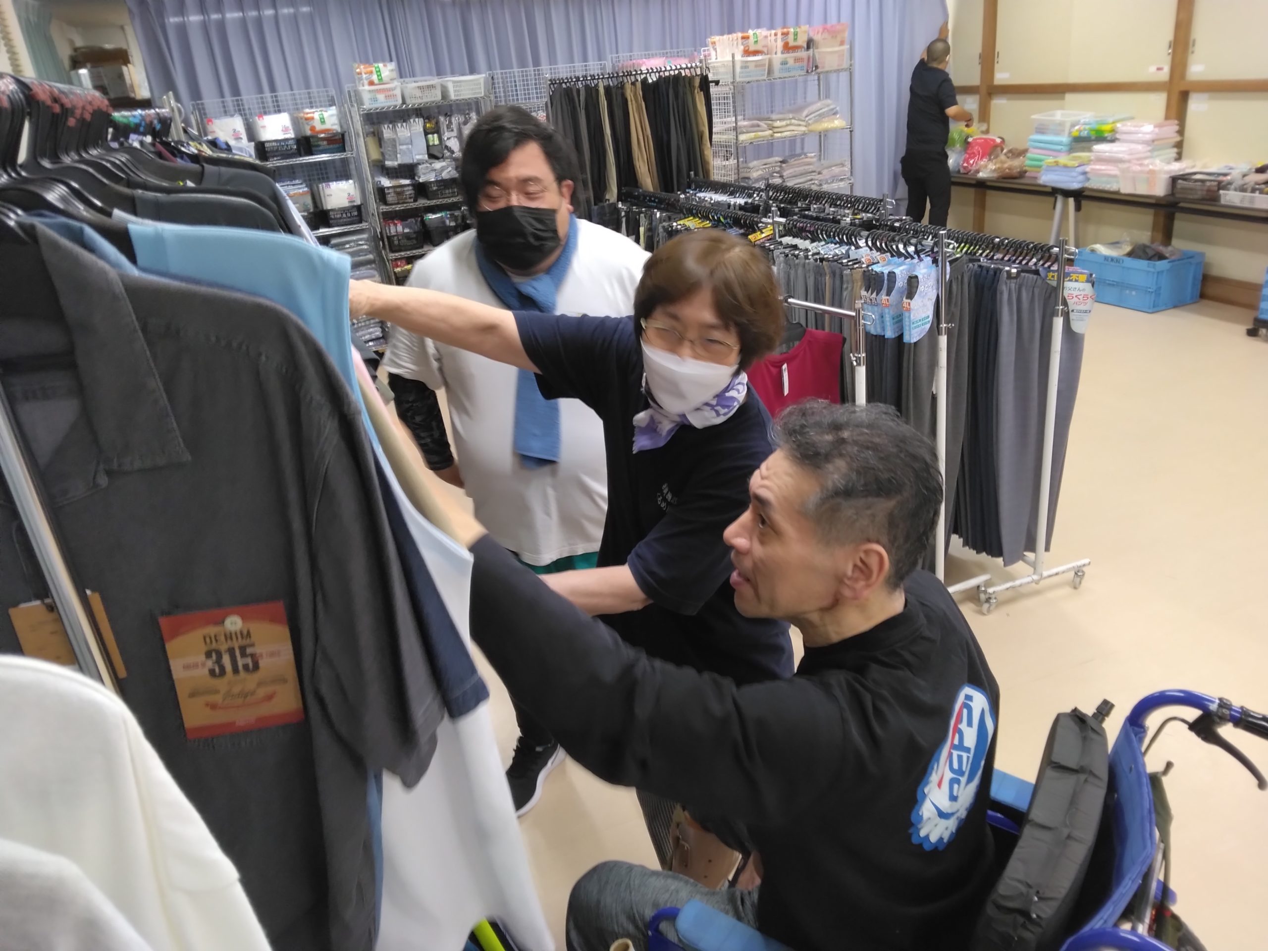 訪問販売開催しました2025.07.25救護施設くるめ園長野県にある、「おひさまデパート」さんにきてもらい、訪問販売を行ってもらいました。衣類やお菓子、雑貨などたくさんの中から手のとってえらんでもらってます。あまり外出に行けない方々も、時間を気にせずに思う存分買い物を楽しむことができました。中には午前も午後も来られる方もおり、久々の買い物を堪能していたようです。地域の方の参加もできますので、次回決まりましたらご案内いたします。