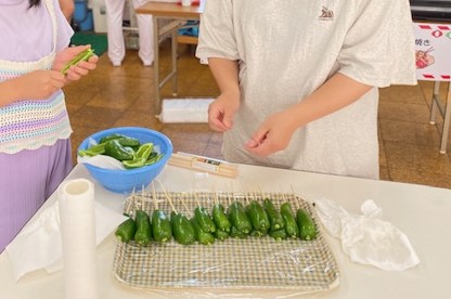 今日は納涼祭。模擬店でファームで獲れた野菜を天ぷらにして出しました。