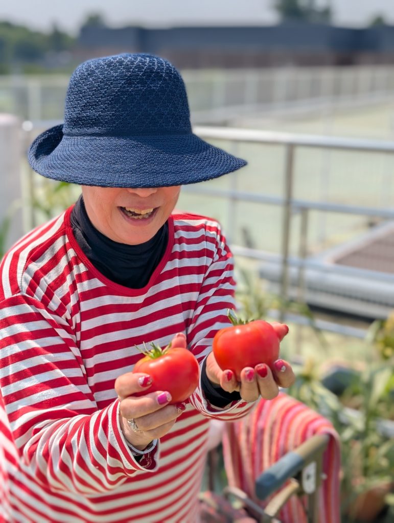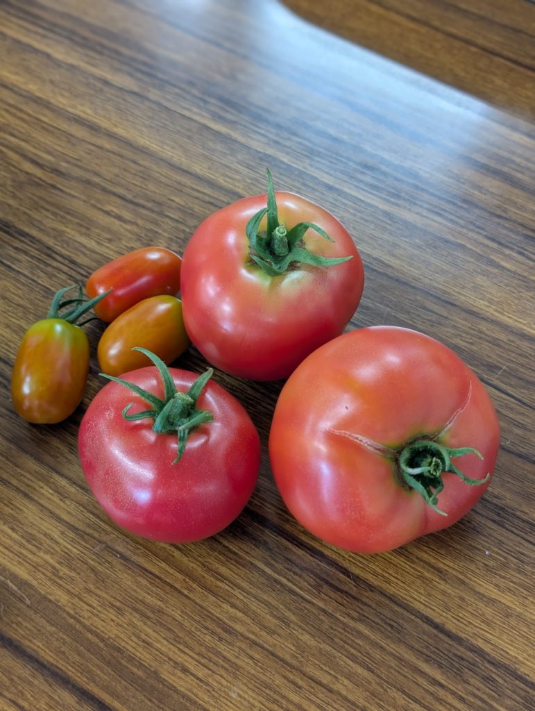 今年初めてのトマトの収穫。甘くてとても美味しかったです。